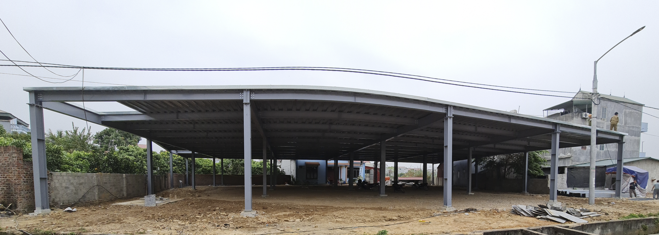 타설전에 2층 기둥도 세울 것이다. H BIM이 아닌 사각파이프를 여러개를 용접으로 붙인 후 공간에 콘크리트를 밀어 넣어 H BIH 보다 하중을 견뎌내는 힘이 더 강하다고 한다 .
